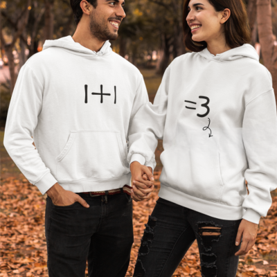 Hoodies Personalizadas Casal | Revelação de Gravidez Criativa “1+1=3”